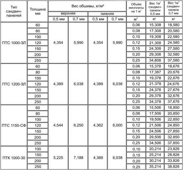 Вес одного квадратного метра сэндвич-панели зависит от веса листов обшивы, плотности, толщины утеплителя и количества клея.